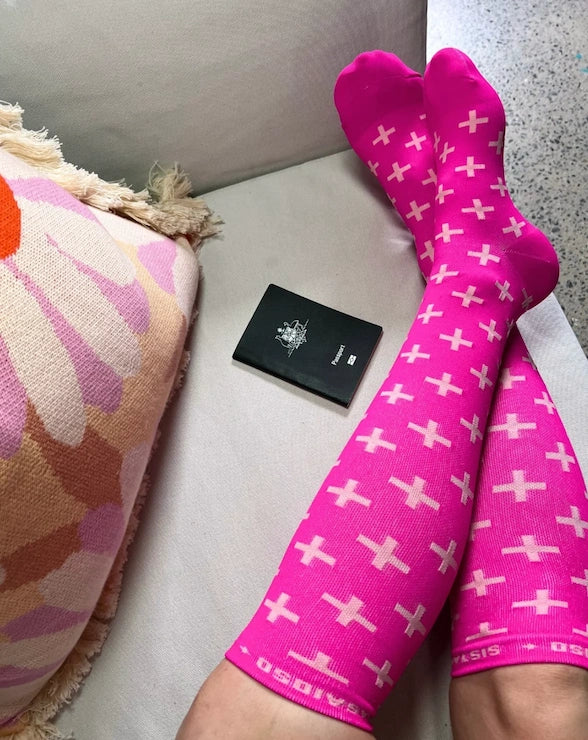 Our On-Shift Barbie Pink Cross Compression Socks aren’t just about function, they’re about feeling empowered with every step. Designed by nurses who understand the demands of long shifts, these socks are your go-to for unmatched comfort, support, and style. Whether you're on your feet all day or sitting for hours, our compression socks help you stay energised and focused.