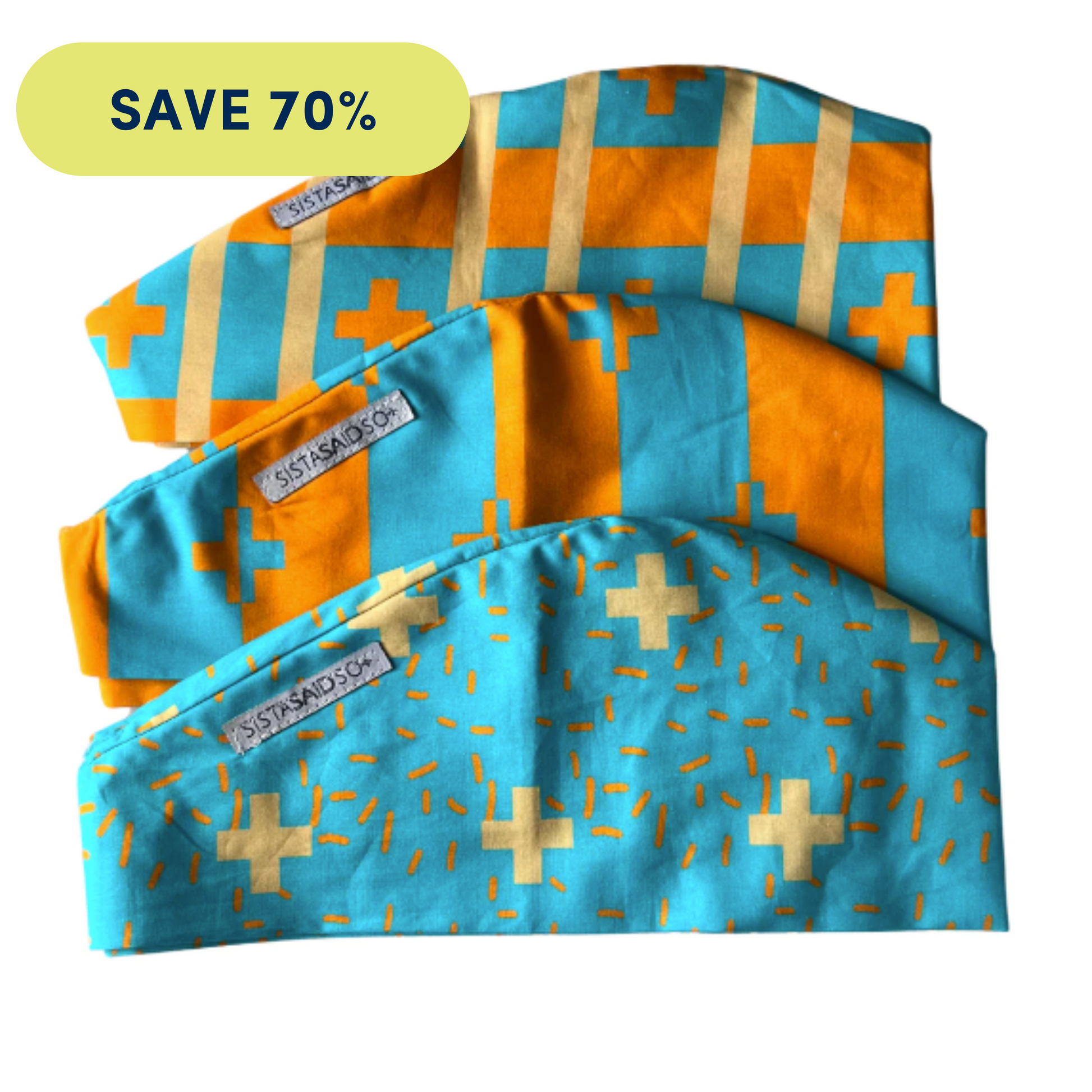The In-Charge Aqua Scrub Cap 3-Set is designed to fit so comfortably, that you'll forget you’ve got one on your head. These scrub caps are the perfect way to show off your unique style amidst the luminous lights and sterile fields of the operating room.